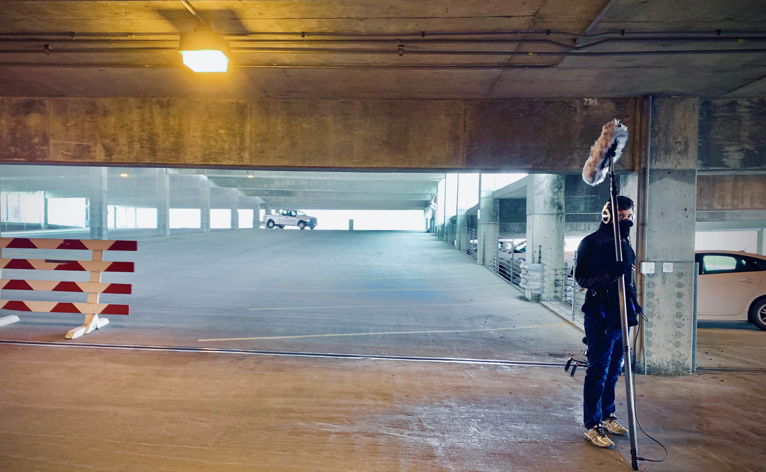 - Sound recordist Jacob Withers waits for the next take